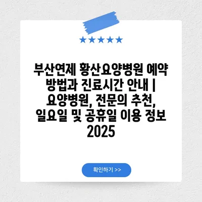부산연제 황산요양병원 예약 방법과 진료시간 공지 | 요양병원, 전연락 추천, 일요일 및 공휴일 이용 정보 2025 에 대해 자주 묻는 질문 TOP 5