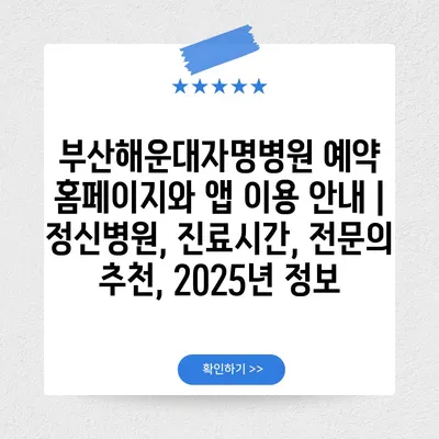 부산해운대자명병원 예약 홈페이지와 앱 이용 공지 | 정신병원, 진료시간, 전연락 추천, 2025년 정보 에 대해 자주 묻는 질문 TOP 5