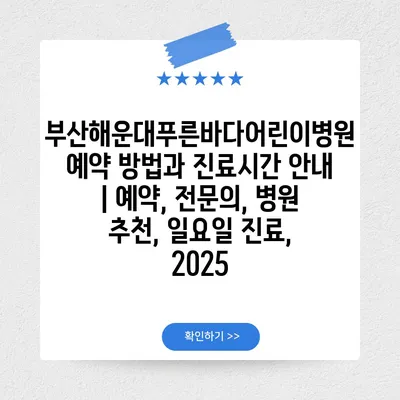 ✅ 부산해운대푸른바다어린이병원 예약 방법을 자세히 알아보세요!