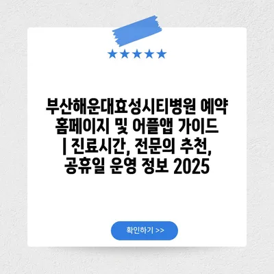 부산해운대효성시티병원 예약 홈페이지 및 어플앱 설명서 | 진료시간, 전연락 추천, 공휴일 운영 정보 2025 에 대해 자주 묻는 질문 TOP 5