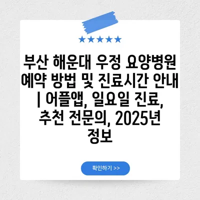 부산 해운대 우정 요양병원 예약 방법 및 진료시간 안내 | 어플앱, 일요일 진료, 추천 전문의, 2025년 정보