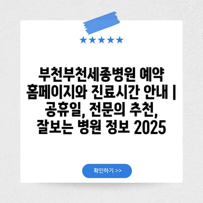 ✅ 부천부천세종병원의 진료시간 및 예약 방법을 지금 바로 알아보세요!