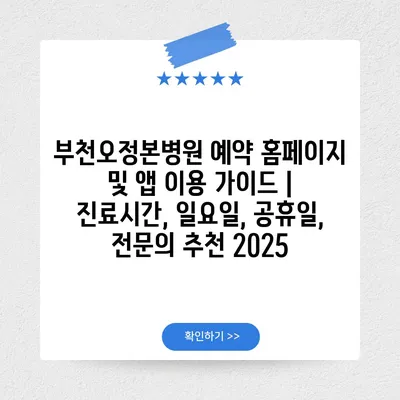 ✅ 부천오정병원 예약 방법과 팁을 지금 바로 알아보세요!