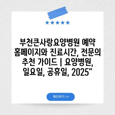 부천큰사랑요양병원 예약 홈페이지와 진료시간, 전연락 추천 설명서 | 요양병원, 일요일, 공휴일, 2025″ 에 대해 자주 묻는 질문 TOP 5