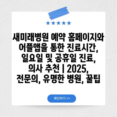 새미래병원 예약 홈페이지와 어플앱을 통한 진료시간, 일요일 및 공휴일 진료, 의사 추천 | 2025, 전연락, 유명한 병원, 꿀팁 에 대해 자주 묻는 질문 TOP 5