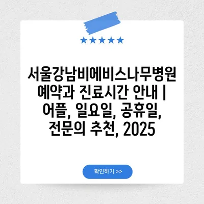 ✅ 서울강남비에비스나무병원의 진료 시간과 예약 방법을 알아보세요.