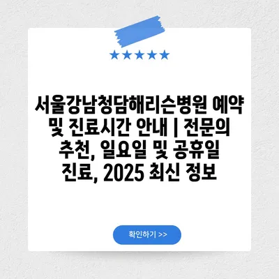 서울강남청담해리슨병원 예약 및 진료시간 공지 | 전연락 추천, 일요일 및 공휴일 진료, 2025 최신 정보 에 대해 자주 묻는 질문 TOP 5