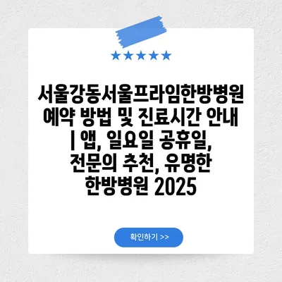 서울강동서울프라임한방병원 예약 방법 및 진료시간 공지 | 앱, 일요일 공휴일, 전연락 추천, 유명한 한방병원 2025 에 대해 자주 묻는 질문 TOP 5