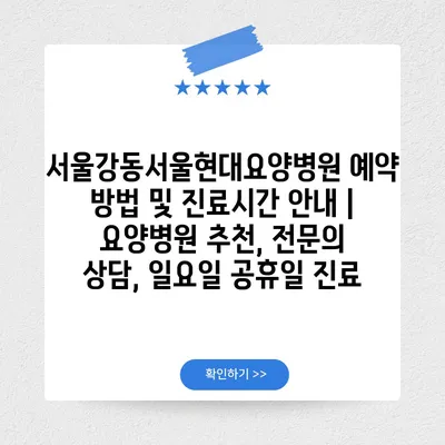 ✅ 서울강동서울현대요양병원의 진료시간과 예약 방법을 알아보세요.