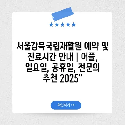 ✅ 서울강북국립재활원 예약 정보를 지금 바로 확인해보세요!