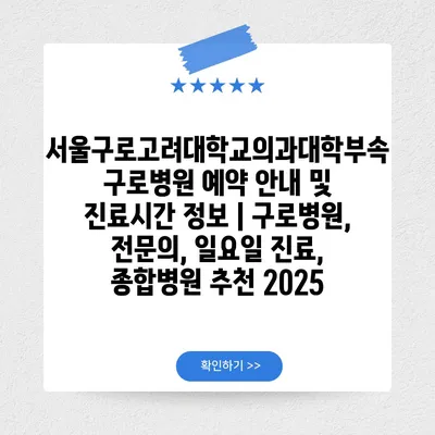 서울구로고려대학교의과대학부속구로병원 예약 공지 및 진료시간 정보 | 구로병원, 전연락, 일요일 진료, 종합병원 추천 2025 에 대해 자주 묻는 질문 TOP 5