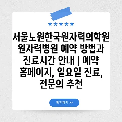 서울노원한국원자력의학원 예약 방법을 간편하게 알아보세요.