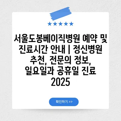서울도봉베이직병원 예약 및 진료시간 공지 | 정신병원 추천, 전연락 정보, 일요일과 공휴일 진료 2025 에 대해 자주 묻는 질문 TOP 5