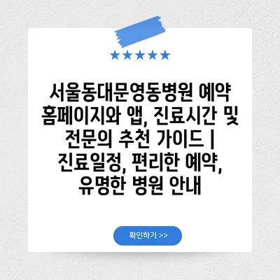 ✅ 서울동대문영동병원 예약 방법과 전문의 정보를 쉽게 알아보세요.