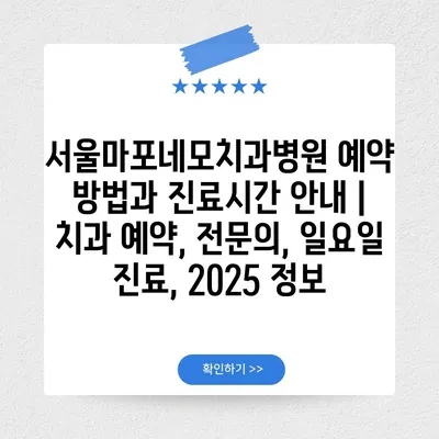 서울마포네모치과병원 예약 방법과 진료시간 공지 | 치과 예약, 전연락, 일요일 진료, 2025 정보 에 대해 자주 묻는 질문 TOP 5