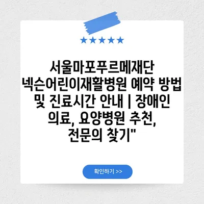 ✅ 서울마포푸르메재단 넥슨어린이재활병원의 예약 방법을 지금 바로 알아보세요!