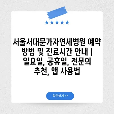 ✅ 서울서대문가자연세병원 예약 방법을 지금 바로 알아보세요!