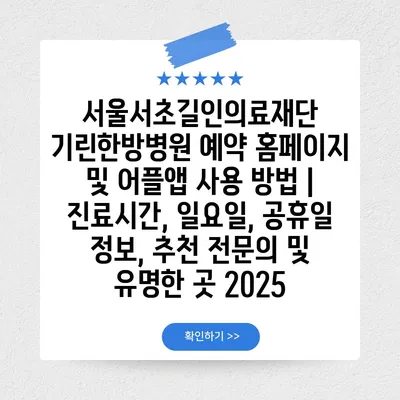 서울서초길인의료재단 기린한방병원 예약 홈페이지 및 어플앱 사용 방법 | 진료시간, 일요일, 공휴일 정보, 추천 전연락 및 유명한 곳 2025 에 대해 자주 묻는 질문 TOP 5
