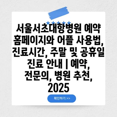 서울서초대항병원 예약 홈페이지와 어플 사용법, 진료시간, 주말 및 공휴일 진료 공지 | 예약, 전연락, 병원 추천, 2025 에 대해 자주 묻는 질문 TOP 5