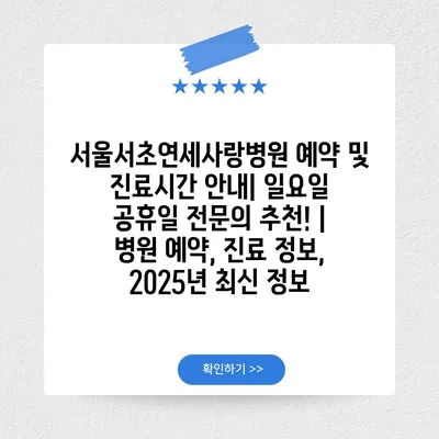 서울서초연세사랑병원 예약 및 진료시간 공지| 일요일 공휴일 전연락 추천! | 병원 예약, 진료 정보, 2025년 최신 정보에 대한 내용을 소개합니다.