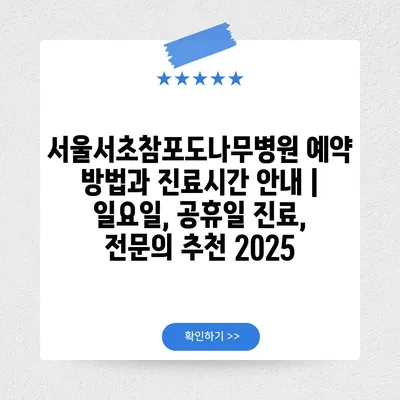 서울서초참포도나무병원 예약 방법과 진료시간 공지 | 일요일, 공휴일 진료, 전연락 추천 2025 에 대해 자주 묻는 질문 TOP 5