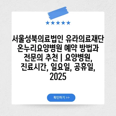 서울성북의료법인 유라의료재단 온누리요양병원 예약 방법과 전연락 추천 | 요양병원, 진료시간, 일요일, 공휴일, 2025에 대해 알아보겠습니다.