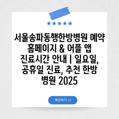 서울송파동행한방병원 예약 홈페이지 & 어플 앱 진료시간 공지 | 일요일, 공휴일 진료, 추천 한방 병원 2025