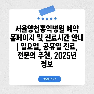 ✅ 서울양천홍익병원의 진료시간 및 예약 방법을 자세히 알아보세요.