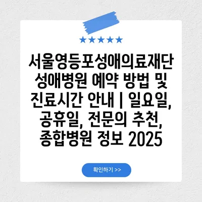 서울영등포성애의료재단 성애병원 예약 방법 및 진료시간 공지 | 일요일, 공휴일, 전연락 추천, 종합병원 정보 2025 에 대해 자주 묻는 질문 TOP 5