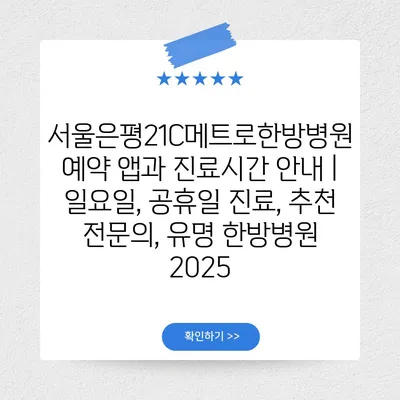 서울은평21C메트로한방병원 예약 앱과 진료시간 공지 | 일요일, 공휴일 진료, 추천 전연락, 유명 한방병원 2025 에 대해 자주 묻는 질문 TOP 5