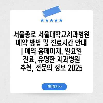서울종로 서울대학교치과병원 예약 방법 및 진료시간 공지 | 예약 홈페이지, 일요일 진료, 유명한 치과병원 추천, 전연락 정보 2025 에 대해 자주 묻는 질문 TOP 5