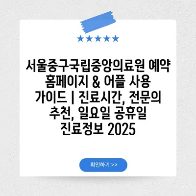 ✅ 서울중구국립중앙의료원 예약 방법을 지금 바로 확인해 보세요.