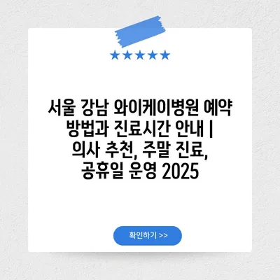 ✅ 서울 강남 와이케이병원 예약 방법을 지금 바로 알아보세요!