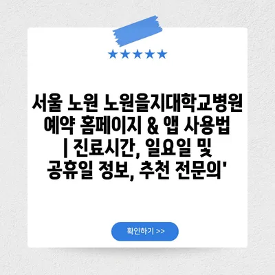 ✅ 서울 노원 노원을지대학교병원 예약 방법을 자세히 알아보세요.