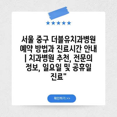 ✅ 서울 중구 더블유치과병원의 예약 방법을 지금 알아보세요!