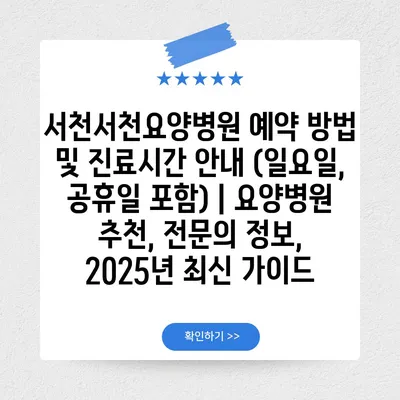 서천서천요양병원 예약 방법 및 진료시간 공지 (일요일, 공휴일 포함) | 요양병원 추천, 전연락 정보, 2025년 최신 설명서 에 대해 자주 묻는 질문 TOP 5
