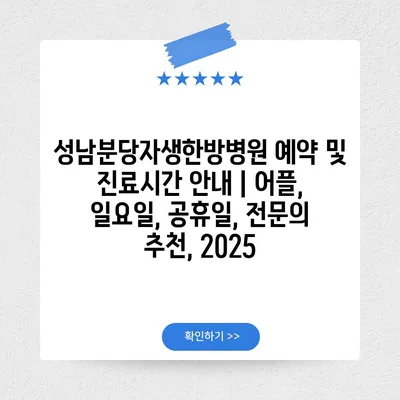 성남분당자생한방병원 예약 및 진료시간 안내 | 어플, 일요일, 공휴일, 전문의 추천, 2025