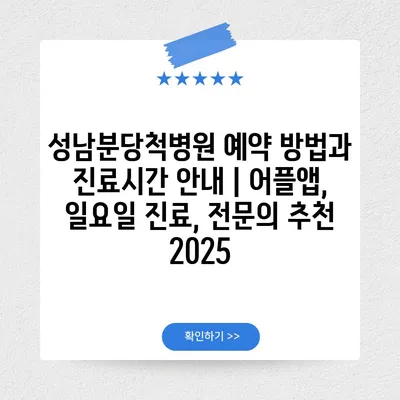 ✅ 성남분당척병원의 예약 방법과 진료시간을 자세히 알아보세요.