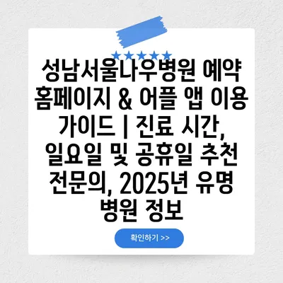 성남서울나우병원 예약 홈페이지 & 어플 앱 이용 가이드 | 진료 시간, 일요일 및 공휴일 추천 전문의, 2025년 유명 병원 정보