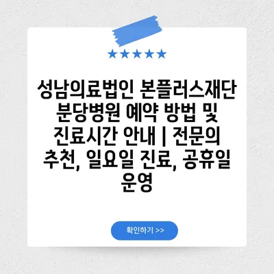 성남의료법인 본플러스재단 분당병원 예약 방법 및 진료시간 공지 | 전연락 추천, 일요일 진료, 공휴일 운영 에 대해 자주 묻는 질문 TOP 5