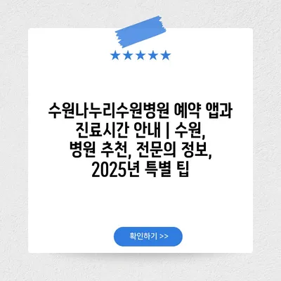 수원나누리수원병원 예약 앱과 진료시간 공지 | 수원, 병원 추천, 전연락 정보, 2025년 특별 팁 에 대해 자주 묻는 질문 TOP 5