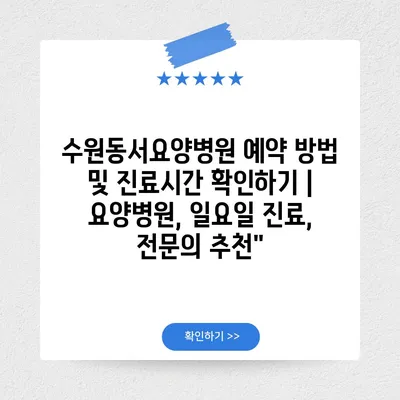 ✅ 수원동서요양병원의 진료시간과 예약 방법을 알아보세요.