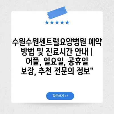 ✅ 수원수원센트럴요양병원의 예약 방법과 진료시간을 쉽게 알아보세요.
