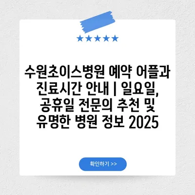 수원초이스병원 예약 어플과 진료시간 공지 | 일요일, 공휴일 전연락 추천 및 유명한 병원 정보 2025 에 대해 자주 묻는 질문 TOP 5