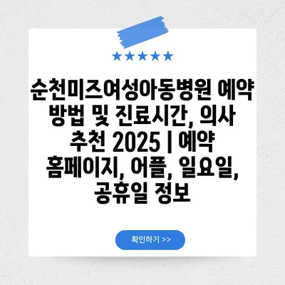✅ 순천미즈여성아동병원의 예약 방법을 간편하게 알아보세요.