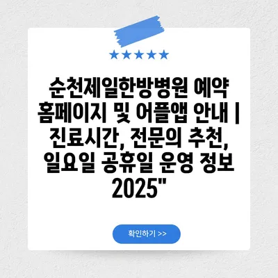 순천제일한방병원 예약 홈페이지 및 어플앱 안내 | 진료시간, 전문의 추천, 일요일 공휴일 운영 정보 2025″