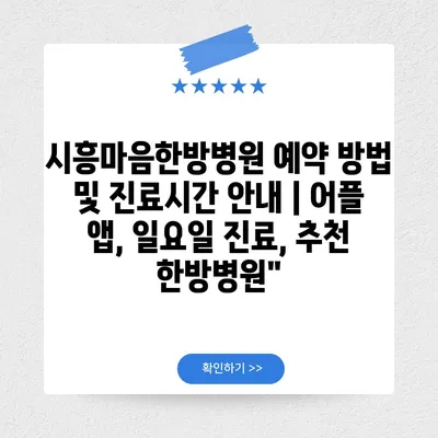 시흥마음한방병원 예약 방법 및 진료시간 안내 | 어플 앱, 일요일 진료, 추천 한방병원”