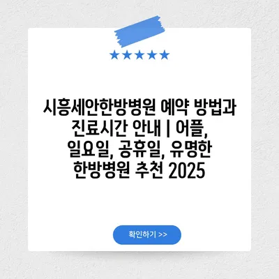 ✅ 시흥세안한방병원의 예약 방법을 자세히 알아보세요.