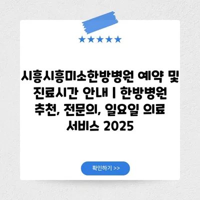 시흥시흥미소한방병원 예약 및 진료시간 공지 | 한방병원 추천, 전연락, 일요일 의료 서비스 2025 에 대해 자주 묻는 질문 TOP 5
