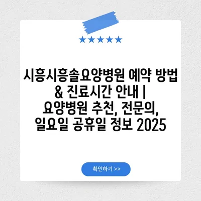 ✅ 시흥시흥솔요양병원의 예약 방법과 진료시간을 지금 바로 알아보세요!